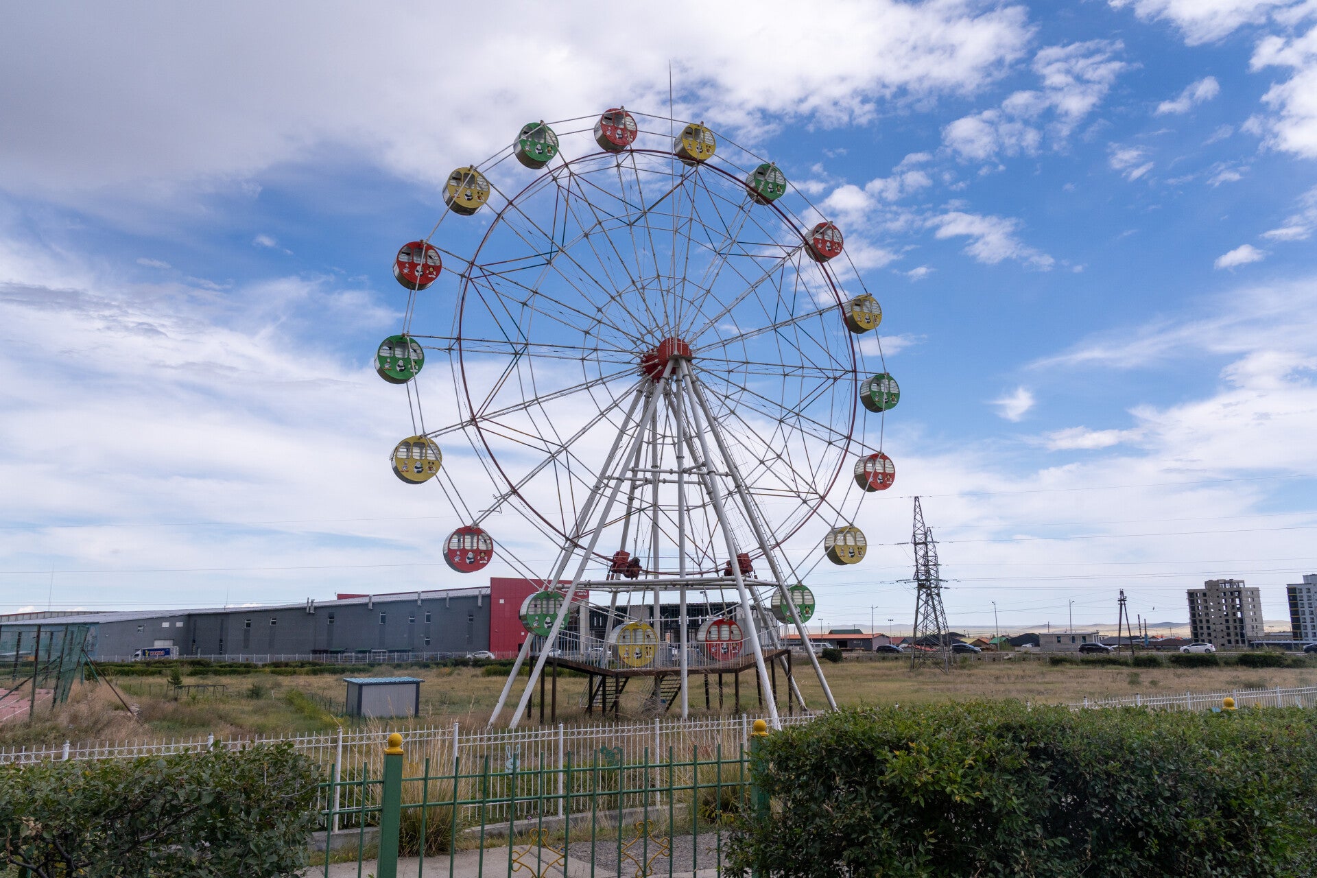 Much later, in 1920, the Russian Red Army liberated Mongolia from China. Mongolia became the second communist state in the world. It never belonged to the Soviet Union; it was a safe buffer between China and Russia. But Moscow had a lot of influence. Urban designers, architects and artists were sent by Moscow to Mongolia to shape it after the 'Russian model'. This is reflected in the larger towns. Flats in prefabricated concrete, end walls studded with mosaic images, theatrical statues and a ferris wheel, as part of an amusement park. Because, was the philosophy, one should also be able to relax. In the 1970s, factories were built, for wool, cashmere and food processing and workshops for agricultural machinery. But the amusement parks are dilapidated and the factories abandoned because in 1991, when the Soviet Union fell apart, Mongolia's economy also collapsed.