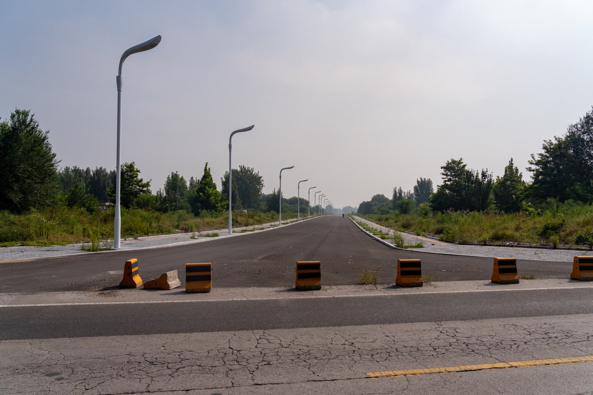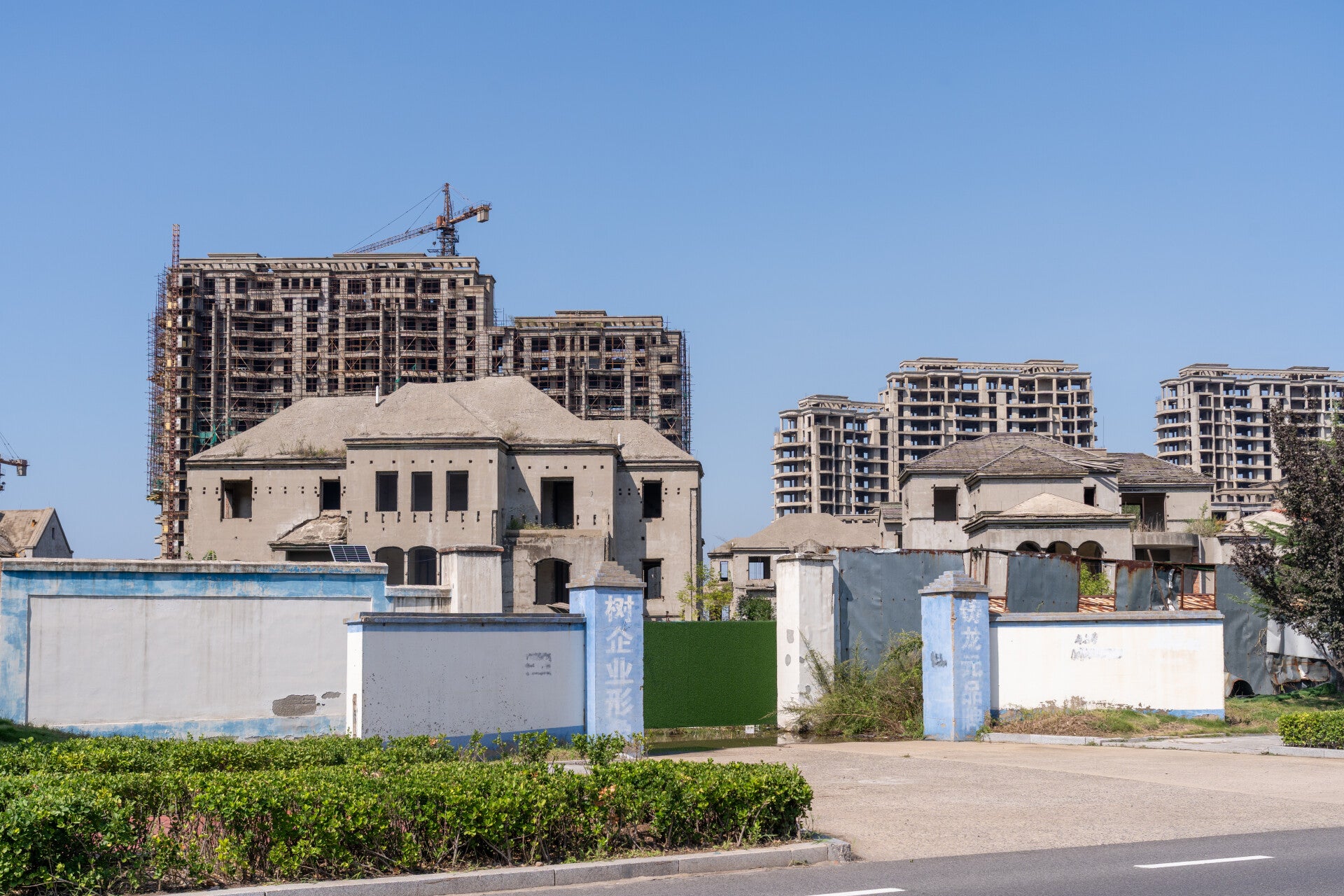 vacant apartment buildings and lots of unfinished concrete shells six-lane roads that are empty