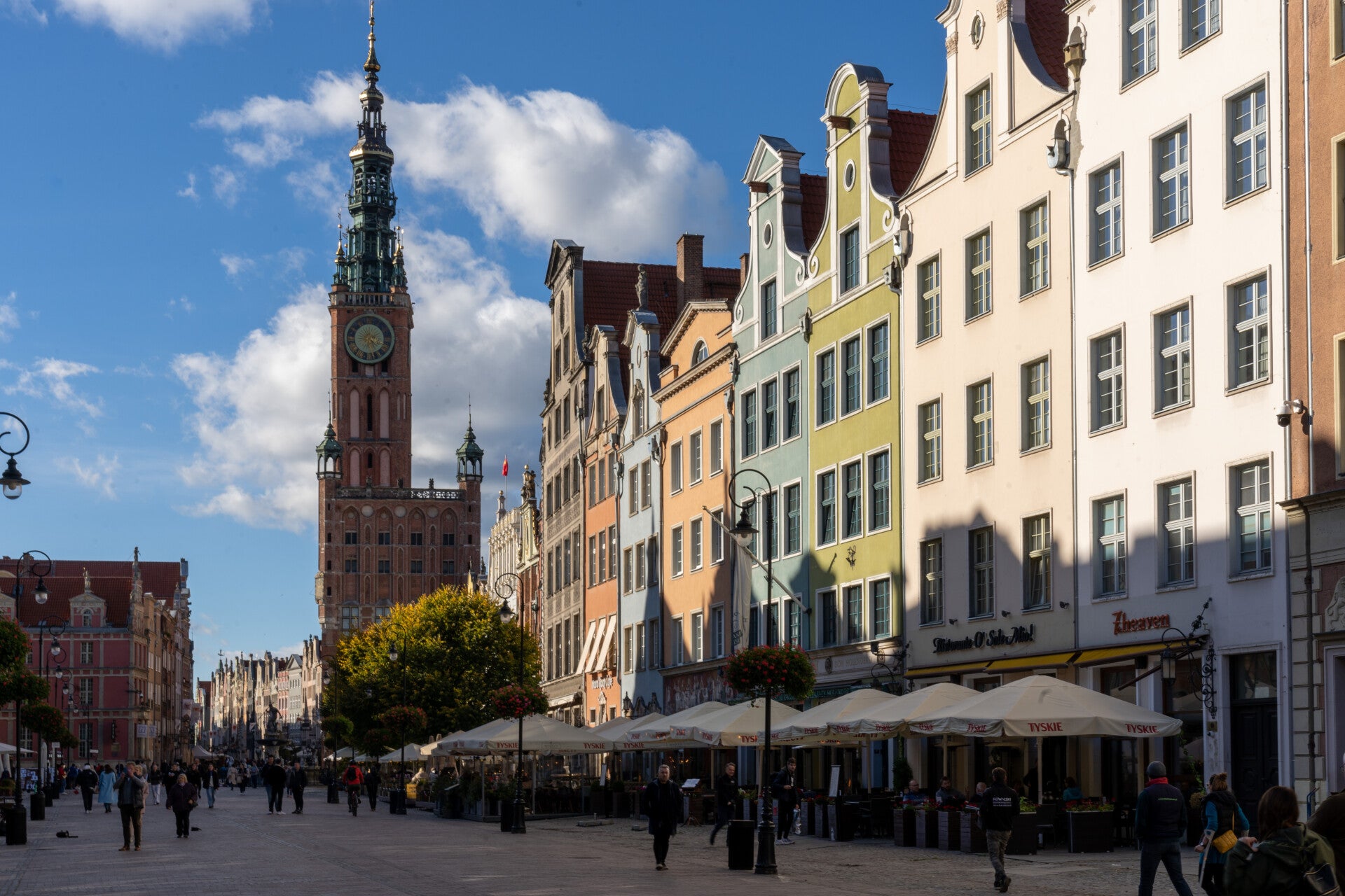 We hebben in Gdańsk drie dagen een appartement gehuurd. We maken een rondvaart door de haven en slenteren door de prachtig gerestaureerde binnenstad met fraai gekleurde gevels.